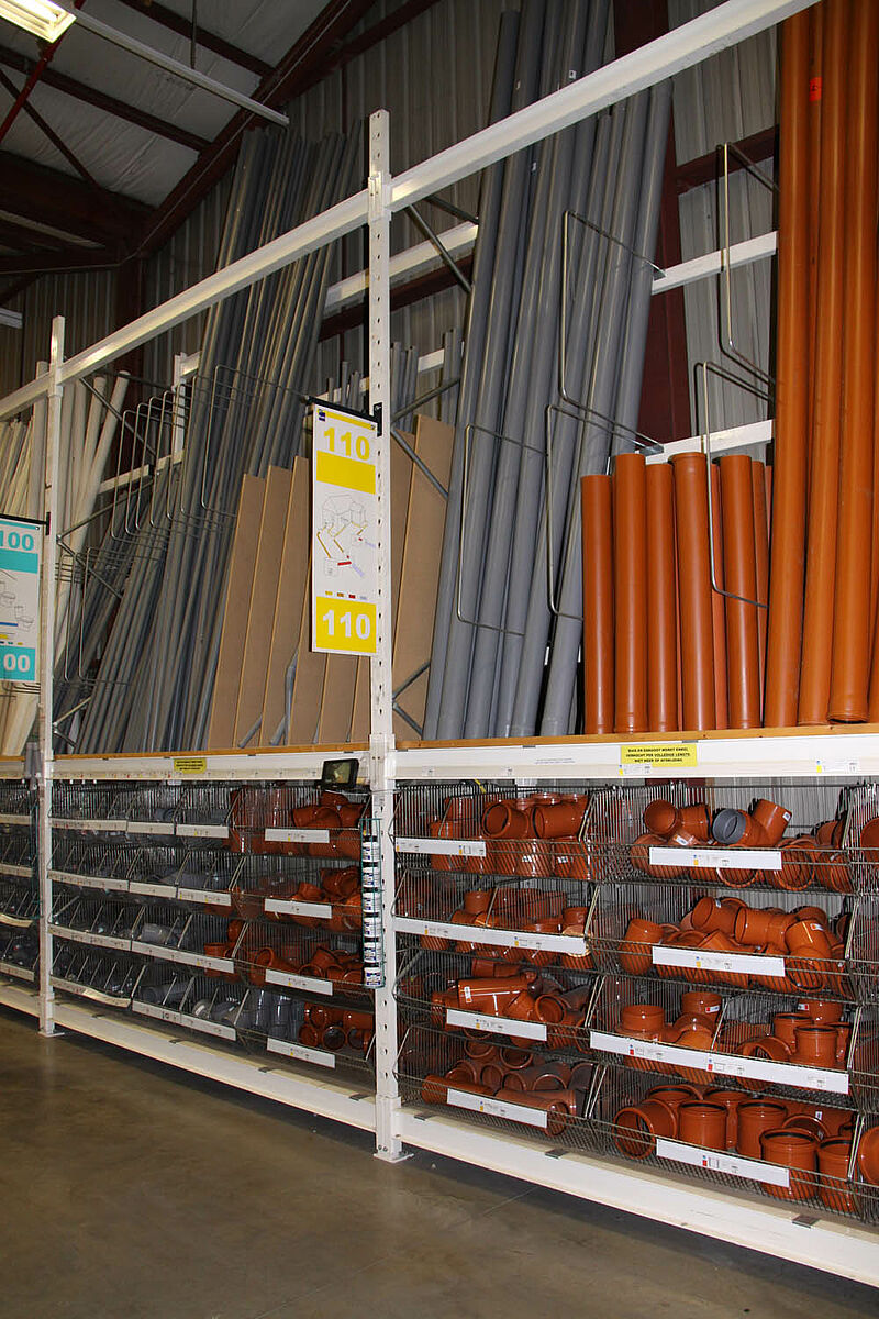 For many goods, such as moulding, profiles, bars or tubes, vertical racking systems are the perfect and customer-friendly type of storage. Different items and sizes can be sorted and presented to be readily accessible in the warehouse or sales room.