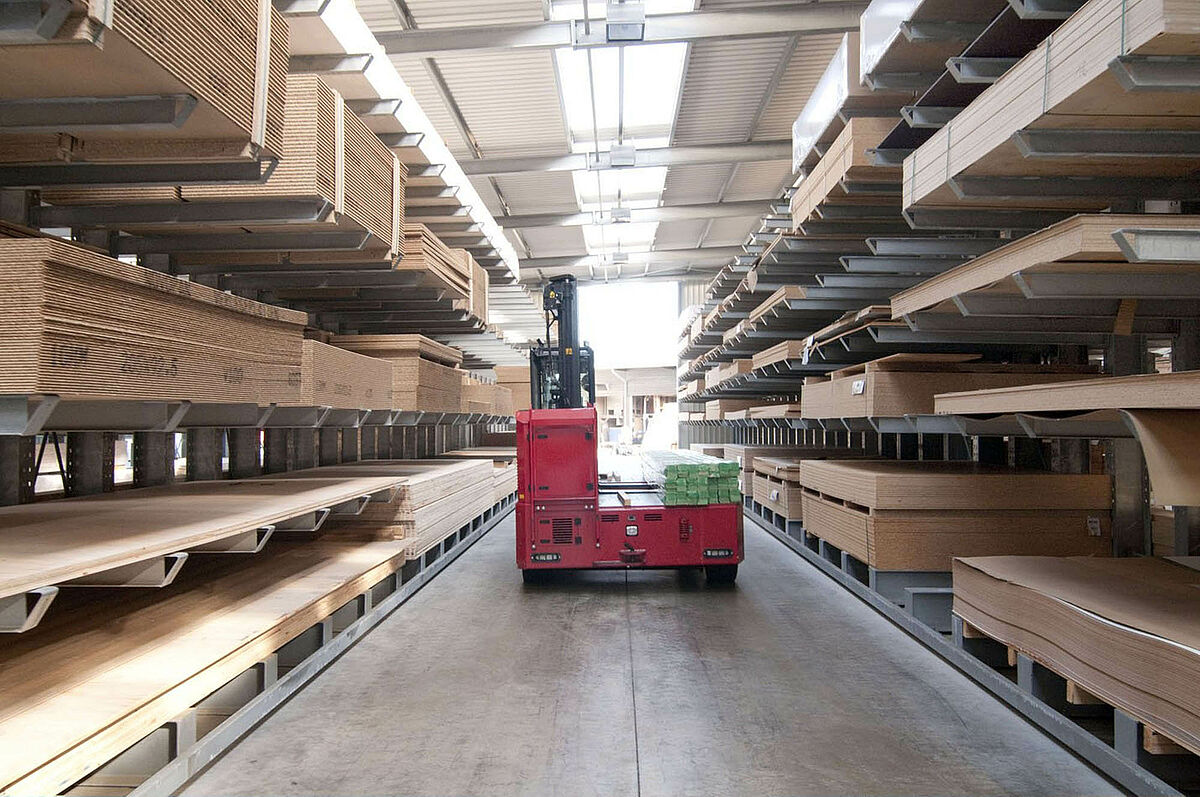As a wholesale and retail company, Schyns GmbH, based in Siegburg, offers a comprehensive range of wood products for private and commercial customers – from solid construction timber to summer houses. The wood articles are stored in a rack warehouse which has been continually expanded over the last 20 years. Thus, during the course of time, a complete warehouse was built up from individual rack aisles and later duplicated, allowing the entire warehouse to grow with the company.