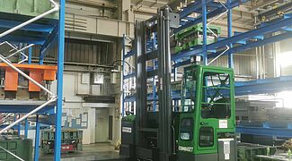 Compared to the alternative storage on the floor, Solvaro can store significantly more thermoforming tools on the available space with the new racking system. More important, however, is the direct, fast access to each tool: A special forklift truck from Combilift, purchased specifically for the thermoforming tools, can easily lift the heavy tools out of the rack and drive them directly to the thermoforming press. At the same time, the thermoforming tool is always protected from damage thanks to the customised rack construction.